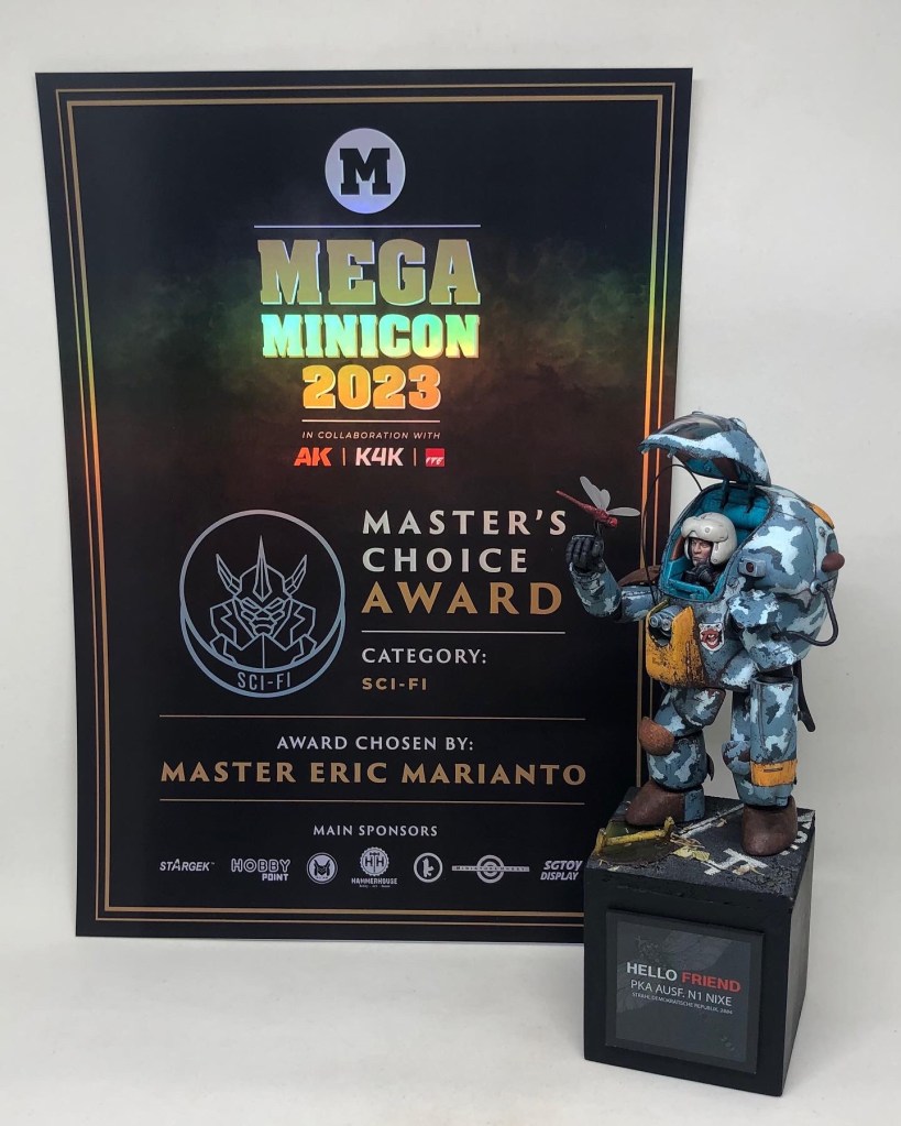 Never expected to pick up the Master’s Choice and People’s choice awards for my maiden entry in SciFi mecha. Perhaps coming from a figure painting background brought about a different style of painting that caught the eye of the judges and fellow mecha modellers.